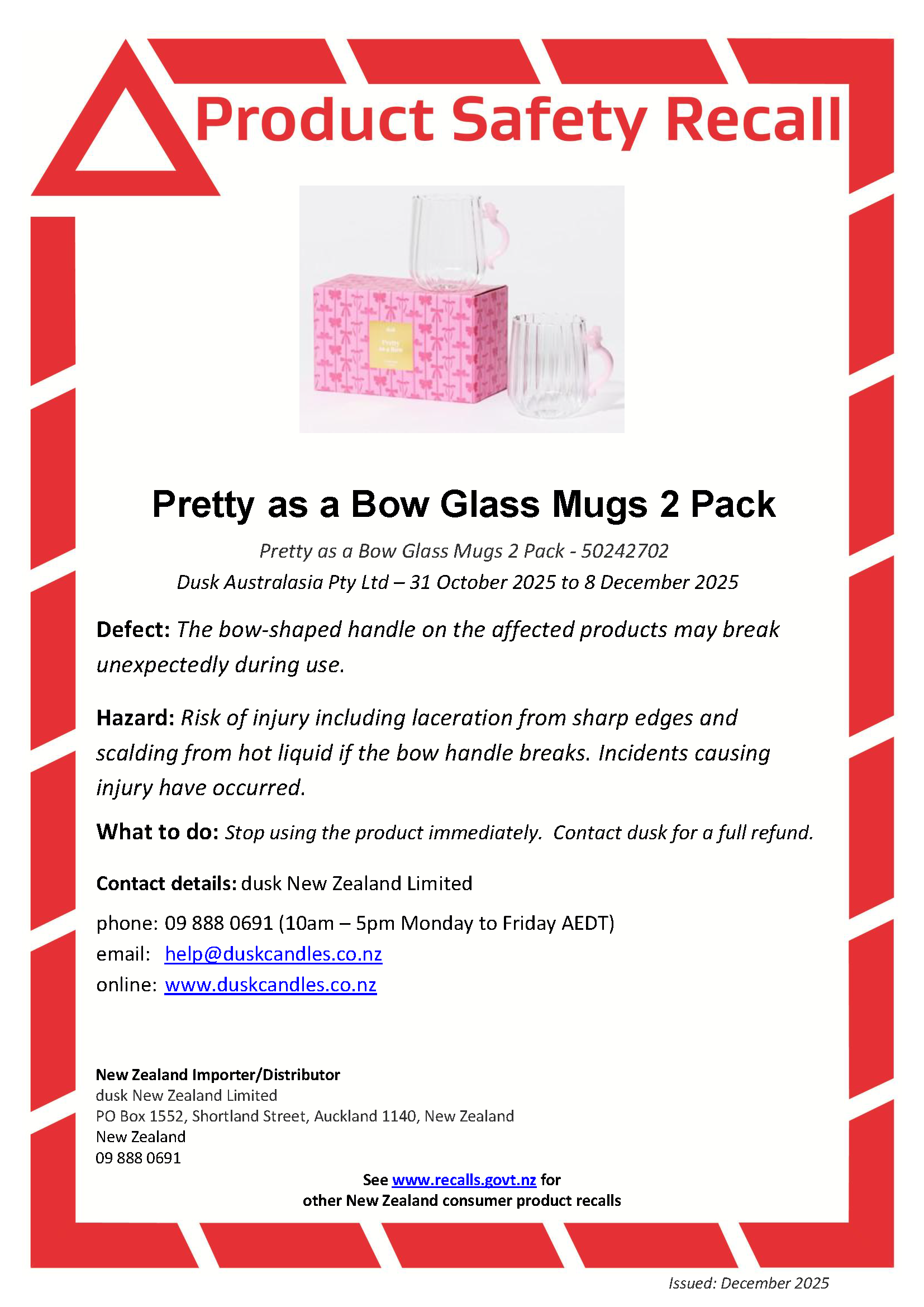 What to do: Consumers should return these Halloween LED products purchased from dusk to their nearest dusk store for a full refund. dusk Australasia is committed to maintaining the highest possible product quality standards.
